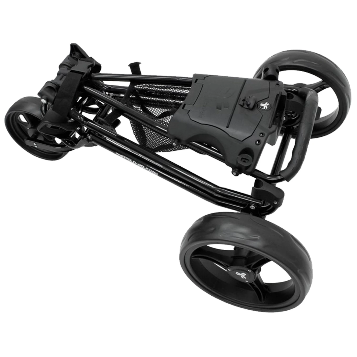 This golf trolley from Fastfold impresses with its modern and high-quality look and is the ideal means of transport for your equipment on the golf course. It is super easy to push or pull back and forth thanks to its ergonomic design, large wheels and comfortable handle. The compact mesh bag on the handle offers you space for your drinks or other accessories. Its practical folding mechanism is perfect for easier transport.