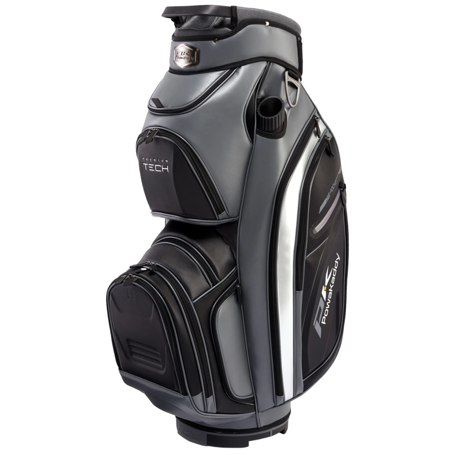 The PowaKaddy Premium-Tech Cart Bag has a modern feel with a magnetic quick-access pocket and front pocket with anti-flex walls giving a premium feel.